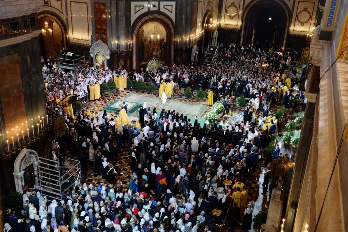 Στη Λειτουργία που τελέστηκε στον Καθερικό Ναό της Μόσχας προεξήρχε ο Πατριάρχης Κύριλλος, ενώ την παρακολούθησε ο πρωθυπουργός Ντιμίτρι Μεντβέντεφ με τη σύζυγό του και χιλιάδες κόσμου.