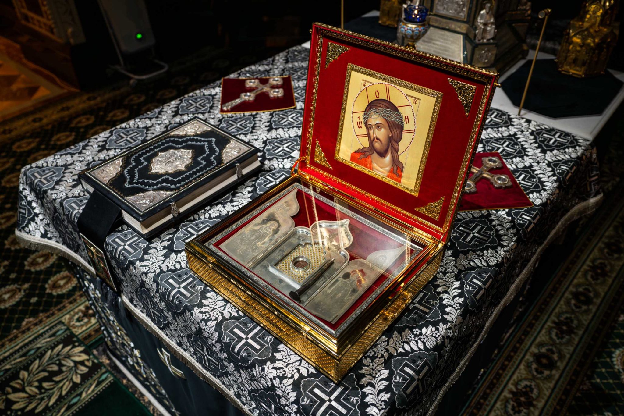 Ιδιαίτερα συγκλονιστική ήταν η στιγμή μετά την ανάγνωση του πέμπτου Ευαγγελίου, όταν ο Πατριάρχης Κύριλλος εξήγαγε τον Τίμιο Σταυρό από την Αγία Τράπεζα και τον τοποθέτησε στο κέντρο του ναού, ενώ οι ψάλτες απέδιδαν το κατανυκτικό αντίφωνο «Σήμερον κρέμεται επί του ξύλου». Η εικόνα αυτή, φορτισμένη με βαθύ θεολογικό συμβολισμό, μετέφερε τους πιστούς στο αποκορύφωμα του Θείου Πάθους.