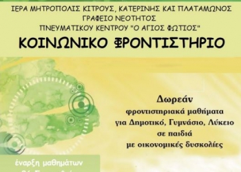 Έναρξη εγγραφών για μαθήματα στο Κοινωνικό Φροντιστήριο της I.M. Κίτρους