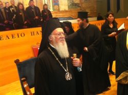 Στην Αίθουσα Τελετών του ΑΠΘ ο Πατριάρχης- Υποδοχή με συνθήματα από τους διοικητικούς υπαλλήλους (Φωτο & Video)