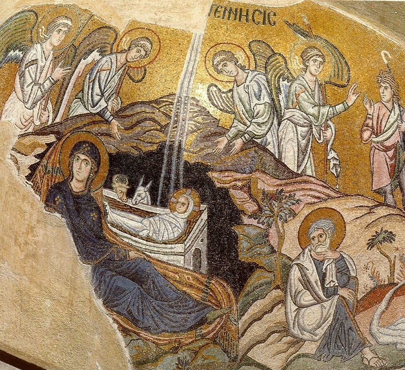 Κοντά του είναι η Μαρία που είναι Παρθένος και μητέρα μαζί. Κοντά του και ο Ιωσήφ, που λεγόταν, χωρίς να είναι, πατέρας. Εκείνος, χωρίς να είναι, λεγόταν άνδρας της Μαρίας, κι εκείνη, χωρίς να είναι, λεγόταν γυναίκα του Ιωσήφ. Νόμιμες ονομασίες αλλά χωρίς περιεχόμενο συζυγικού δεσμού. Μπορείς να κατανοήσεις τα λόγια μου, όχι όμως και τα γεγονότα. Ο Ιωσήφ μνηστεύτηκε μόνο τη Μαρία και το Άγιο Πνεύμα την σκέπασε με τη χάρη του. Γι’ αυτό και βρισκόταν σε απορία ο Ιωσήφ και δε γνώριζε πως να χαρακτηρίσει το Βρέφος. Δεν τολμούσε να πει πως ήταν καρπός μοιχείας και δεν μπορούσε να προφέρει λόγια βλάσφημα σε βάρος της Παρθένου, δεν είχε όμως και τη δύναμη να παραδεχθεί ως δικό του το παιδί, γιατί γνώριζε καλά, πως δεν είχε ιδέα για τον τρόπο που γεννήθηκε, ούτε ποιος έκανε το παιδί. Ενώ λοιπόν βρισκόταν σε απορία, ήρθε από τον ουρανό μήνυμα με τη φωνή του αγγέλου: «Μη φοβάσαι Ιωσήφ, γιατί εκείνο που γεννήθηκε μέσα της προέρχεται από Πνεύμα Άγιον».