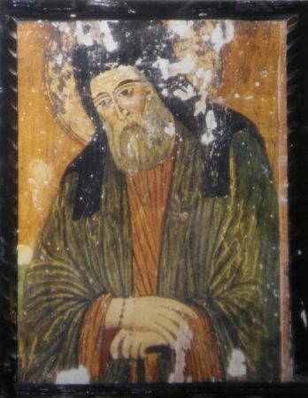 Τοιχογραφία του Αγίου Μακαρίου διά χειρός Πέτρου Κουφάλη στο Καθολικό της Ιεράς Μονής Παναγίας Βροντιανής Σάμου
