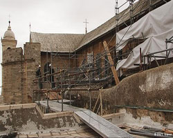 “Γηραιά κυρία” αποκαλεί χαϊδευτικά την εκκλησία ο Μαρτσέλο Πιατσέντι. Και καθώς μιλά ρίχνει το εξεταστικό του βλέμμα στο σαπισμένο δοκάρι της οροφής. Ο ιταλός συντηρητής τέχνης μαζί με την ομάδα του έχει εγκατασταθεί στην οροφή της εκκλησίας. «Αυτή η εκκλησία για πολλούς ανθρώπους είναι ένα από τα πιο σημαντικά μνημεία, ίσως και το σημαντικότερο στον κόσμο», λέει.