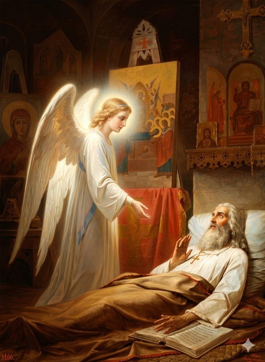 Μετά την αναχώρηση του αγγέλου κυριεύθηκε η ψυχή τού μοναχού από πηκτό σκοτάδι.