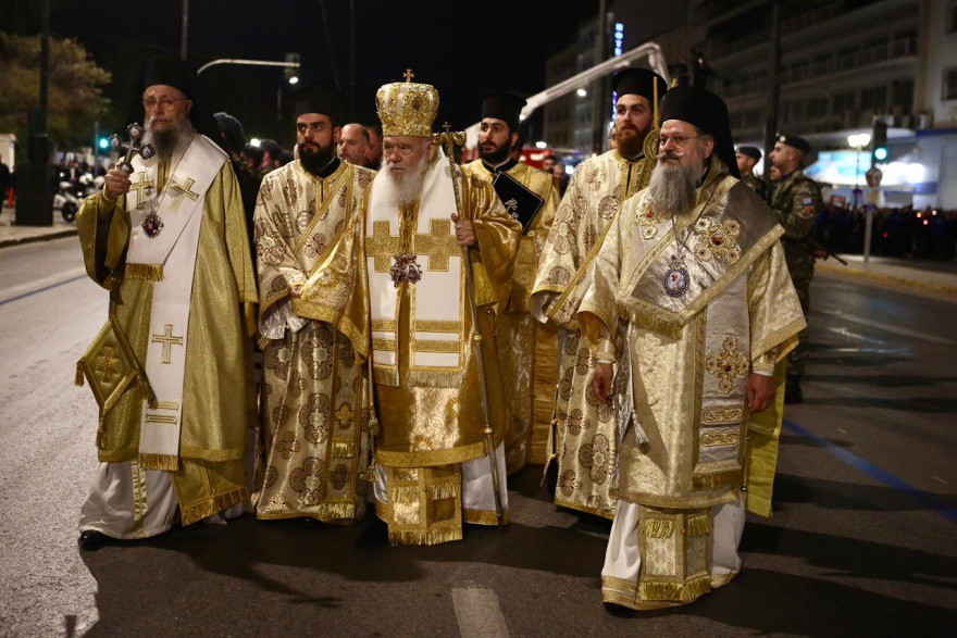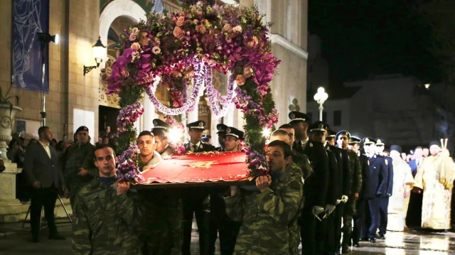 Σε κλίμα βαθιάς κατάνυξης και έντονης συγκίνησης πραγματοποιήθηκε το βράδυ της Μεγάλης Παρασκευής η Ακολουθία και η περιφορά του Επιταφίου στη Μητρόπολη Αθηνών, με χιλιάδες πιστούς να κατακλύζουν το κέντρο της πρωτεύουσας, συμμετέχοντας στο κορυφαίο γεγονός της Μεγάλης Εβδομάδας.