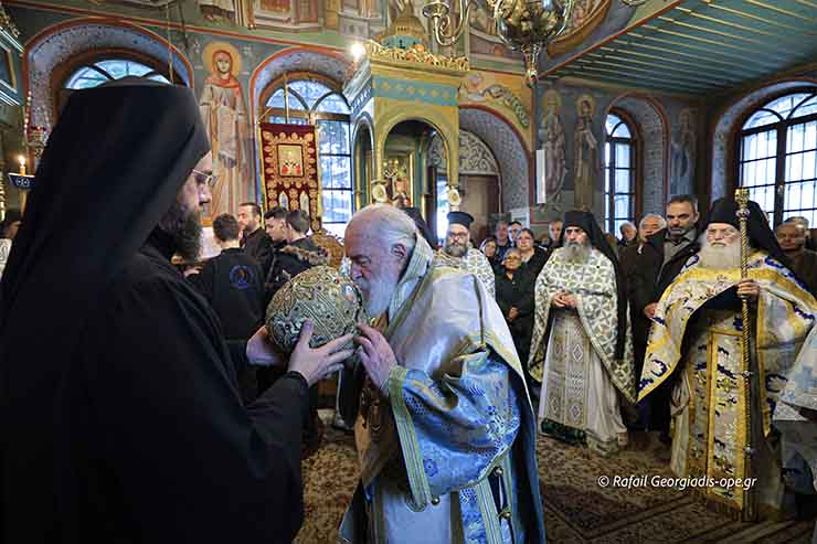 Την πανηγυρική Αρχιερατική Θεία Λειτουργία τέλεσε ο Σεβασμιώτατος Μητροπολίτης Ξάνθης και Περιθεωρίου κ. Παντελεήμων, ο οποίος και κήρυξε τον θείο λόγο. Στη λειτουργία συμμετείχαν ο Γέροντας Εφραίμ, Βατοπαιδινοί πατέρες και ιερείς από την Ελλάδα και την Κύπρο, δημιουργώντας μια επιβλητική πνευματική ατμόσφαιρα.