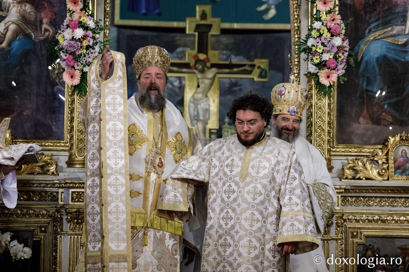 Τη Θεία Λειτουργία τέλεσαν ο Μητροπολίτης Θεσσαλονίκης κ. Φιλόθεος και ο Επίσκοπος Βοτοσιανίων κ. Νικηφόρος, βοηθός Επίσκοπος της Αρχιεπισκοπής Ιασίου.