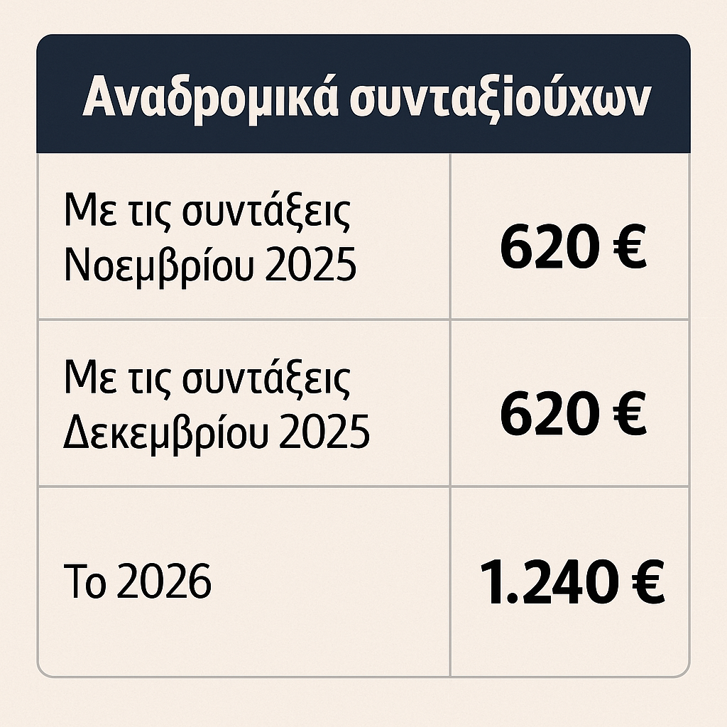 Πίνακας ενδεικτικών ποσών αναδρομικών Νοεμβρίου–Δεκεμβρίου 2025