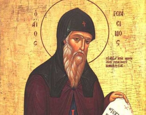 Ο Άγιος Γεράσιμος σύμφωνα με τη παράδοση γεννήθηκε στα Τρίκαλα της Κορινθίας το 1506.
