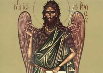 Τα ουράνια πάντα νυν επαγάλλονται, των ανθρώπων το γένος συνεορτάζει αυτοίς, και οι Προφήται μυστικώς συνευφραίνονται· ην γαρ προείδον τυπικώς, εν ταίς αρχαίαις γενεαίς, βάτον και στάμνον και ράβδον, νεφέλην πύλην και θρόνον, και μέγα όρος, γεννάται σήμερον.