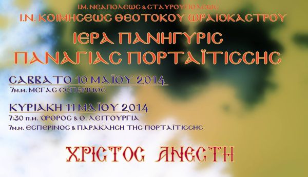 Η Ιερά πανήγυρις της Παναγίας Πορταϊτισσας θα λάβει χώρα σήμερα και αύριο στον Ι.Ν. Κοιμήσεως Θεοτόκου Ωραιοκάστρου.