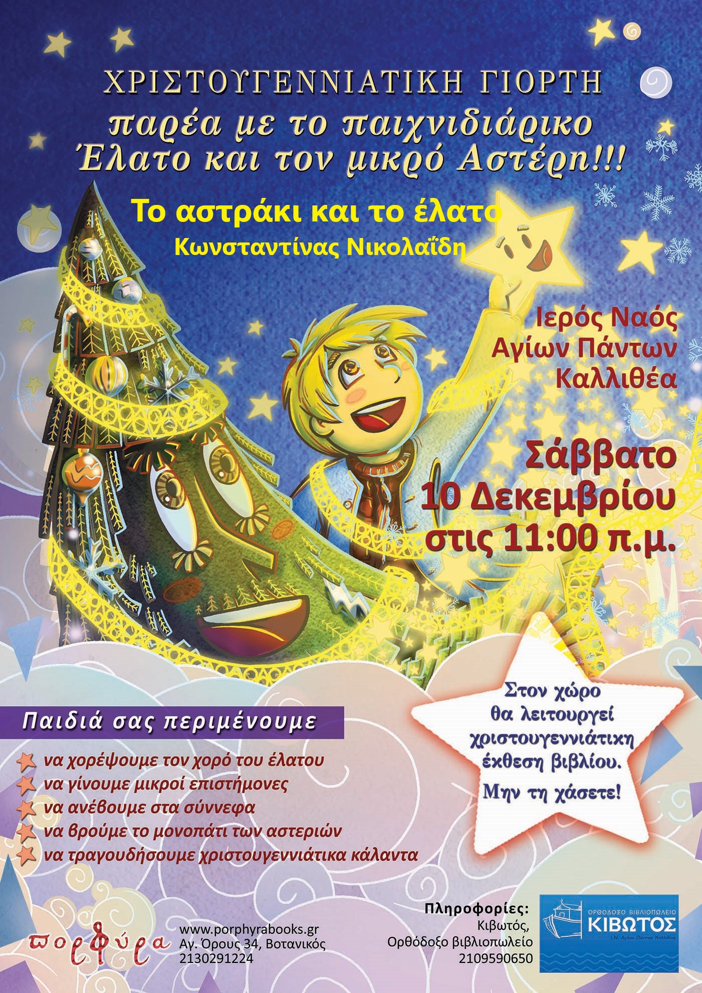 Θα ζήσουμε την εμπειρία ενός μαγευτικού ταξιδιού παρέα με το Χριστουγεννιάτικο Έλατο και τον μικρό Αστέρη … μια αναζήτηση του πραγματικού νοήματος των Χριστουγέννων μέσα από την αγωνιώδη αναζήτηση του Μέγα Έλατου.