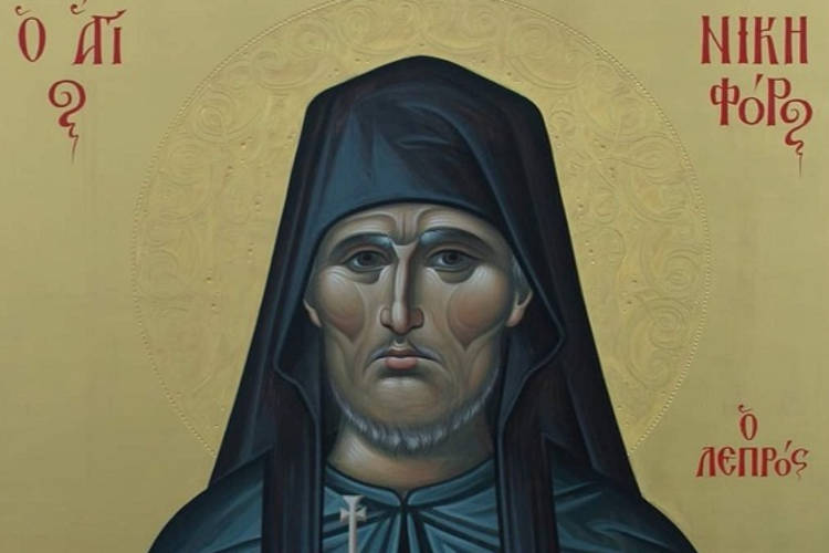 Ιάτρευσον, ημών τά πάθη πρεσβείαις σου Νικηφόρε, ο βαστάσας τής σής σαρκός, ανδρείως τήν λέπρωσιν, εις τέλειον μέτρον τής καρτερίας.